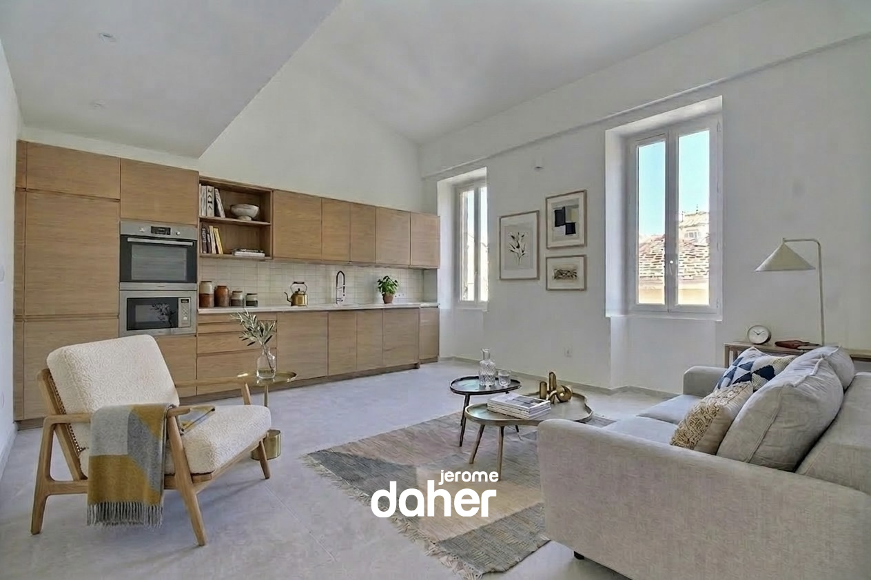 À deux pas du Vieux-Port de Marseille , dans une rue calme et recherchée, découvrez ce bien rare au charme unique, un appartement T4/5 d’esprit maison développant 180 m² de surface utilisable dont 152 m² loi Carrez. Accessible par une entrée indépendante en rez-de-chaussée, ce bien offre dès l’arrivée un espace pratique avec cellier et buanderie menant à l’étage principal où se déploient les espaces de vie. Le premier niveau révèle une spectaculaire pièce de vie de 60 m² baignée de lumière grâce à cinq fenêtres exposées plein sud. Les volumes généreux, la charpente apparente et la belle hauteur sous plafond confèrent à cet espace une atmosphère chaleureuse et authentique. La cuisine ouverte s’intègre harmonieusement au séjour, créant un lieu de réception convivial et élégant. L’espace nuit se compose de trois chambres dont une suite parentale avec sa salle d’eau privative. Les deux autres chambres disposent chacune d’un espace couchage en mezzanine avec vélux, offrant un aménagement original et optimisant les volumes. Une seconde salle d’eau ainsi qu’un WC indépendant complètent cet espace dédié au confort de la famille et des invités. En mezzanine surplombant le séjour, un bureau indépendant apporte un espace supplémentaire idéal pour le télétravail, un atelier ou un coin lecture. L’ensemble de l’appartement bénéficie d’une climatisation réversible, garantissant un confort optimal en toute saison. Ce bien d’exception allie cachet, volumes et emplacement privilégié au cœur de Marseille. Possibilité de location d’un garage double à proximité immédiate : 220€ / mois. Charges mensuelles : 100€. Taxe foncière : 1 300€. Opportunité exeptionnelle d’acquérir en sus du prix un bateau à moteur de 34 pieds, avec sa place au port située à environ 200 mètres du bien. Contact : Arnaud Masson - 06 79 83 03 96 ou Agence - 04 91 47 56 05