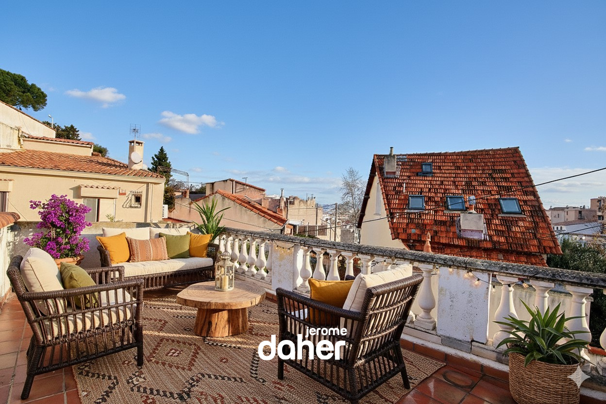 Maison de ville rare à la vente située dans le secteur très prisé du Roucas Blanc / Haut de Périer, au cœur d’un environnement résidentiel recherché. D’une surface de 69m², cette maison en parfait état séduit par son agencement fonctionnel et ses volumes bien répartis. Le rez-de-chaussée accueille une entrée desservant deux chambres confortables, toutes deux équipées de rangements intégrés, ainsi qu’une salle d’eau moderne avec WC. À l’étage, le séjour avec cuisine ouverte développe une surface de 33 m² et bénéficie d’une belle luminosité naturelle et à sa hauteur sous plafond. Son espace de vie convivial offre un cadre idéal pour recevoir et profiter du quotidien. Un WC indépendant est également présent à ce niveau. Un escalier mène à un toit-terrasse de 21 m², véritable atout du bien, offrant une vue dégagée et dominante sur les toits et la mer. Cet espace extérieur, rare sur le secteur, permet de profiter pleinement des beaux jours dans un cadre privilégié. La façade ainsi que les peintures intérieures seront prochainement refaites, garantissant un bien clé en main. Maison idéale pour une résidence principale ou un pied-à-terre dans l’un des quartiers les plus recherchés de Marseille. Taxe foncière - 1641€. Contact : Arnaud MASSON - 06 79 83 03 96 ou Agence - 04 91 47 56 05