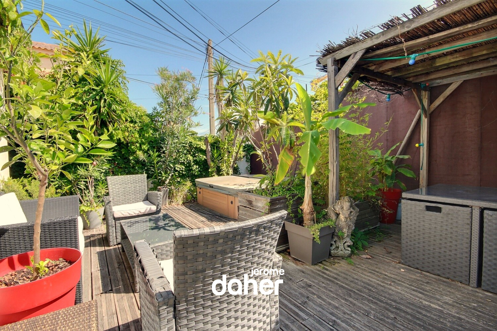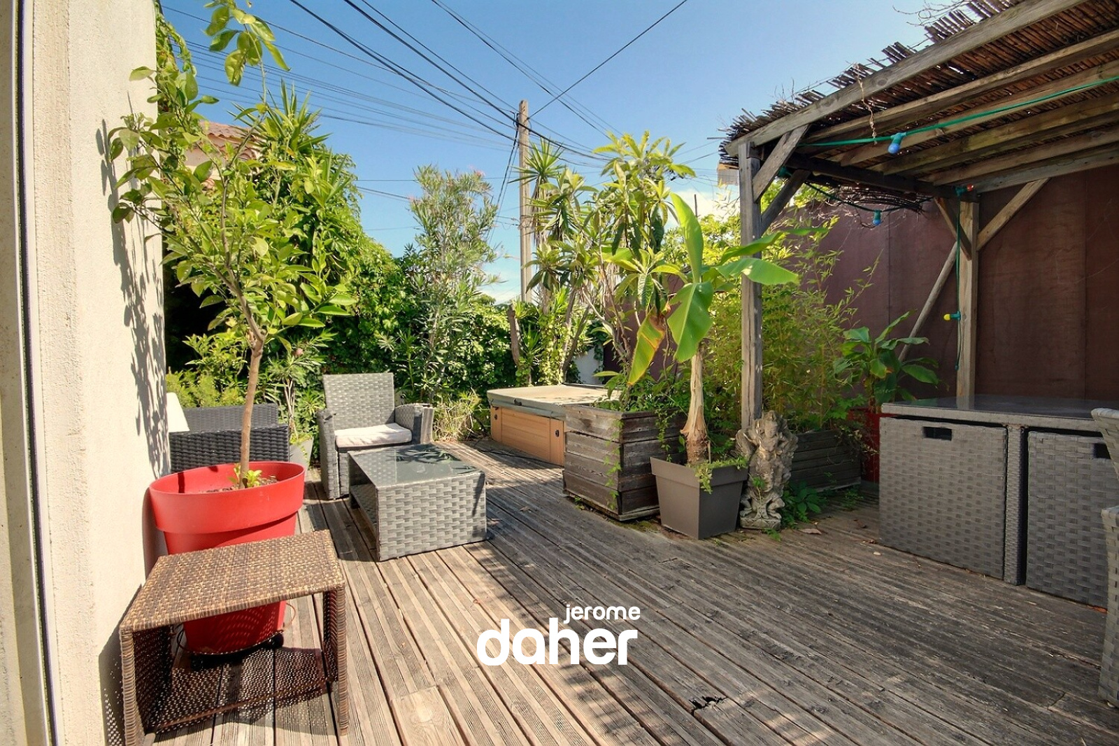 Vieille Chapelle. Idéalement située à 150m de la mer et à proximité immédiate des commerces, découvrez cette charmante maison de 87m² habitables avec garage attenant. La grande terrasse de 60m² arborée et sans vis-à-vis se dote d'un jacuzzi et offre un espace de tranquillité et de convivialité en toutes saisons. Les espaces d'habitation se composent d'une entrée avec WC, d'un séjour lumineux orienté au sud avec accès de plain pied à la terrasse, d'une cuisine aménagée et d'un espace mezzanine pouvant offrir une 3ème chambre d'appoint ou un espace bureau. Le coin nuit se compose d'une première chambre avec salle d'eau et d'une seconde chambre avec salle d'eau et WC. De nombreux rangements facilitent la vie au quotidien. Enfin, le garage mitoyen pourra accueillir un petit véhicule ou être aménagé selon vos besoins. Pour un confort total, à proximité immédiate vous pourrez bénéficiez d'un garage en location.