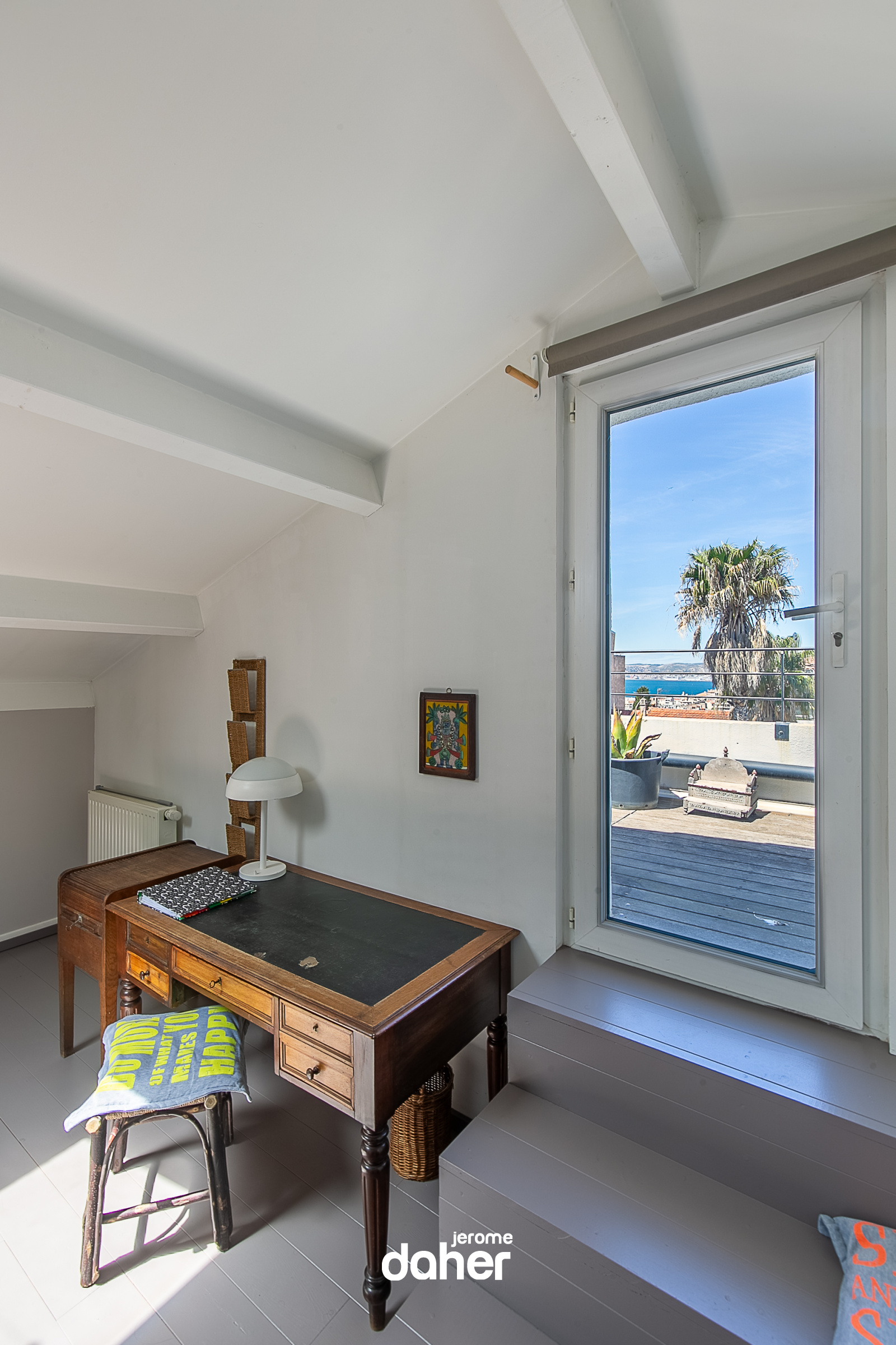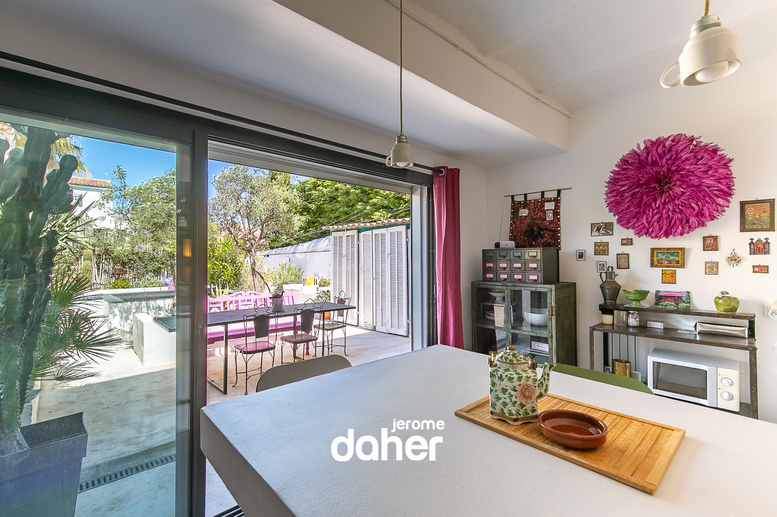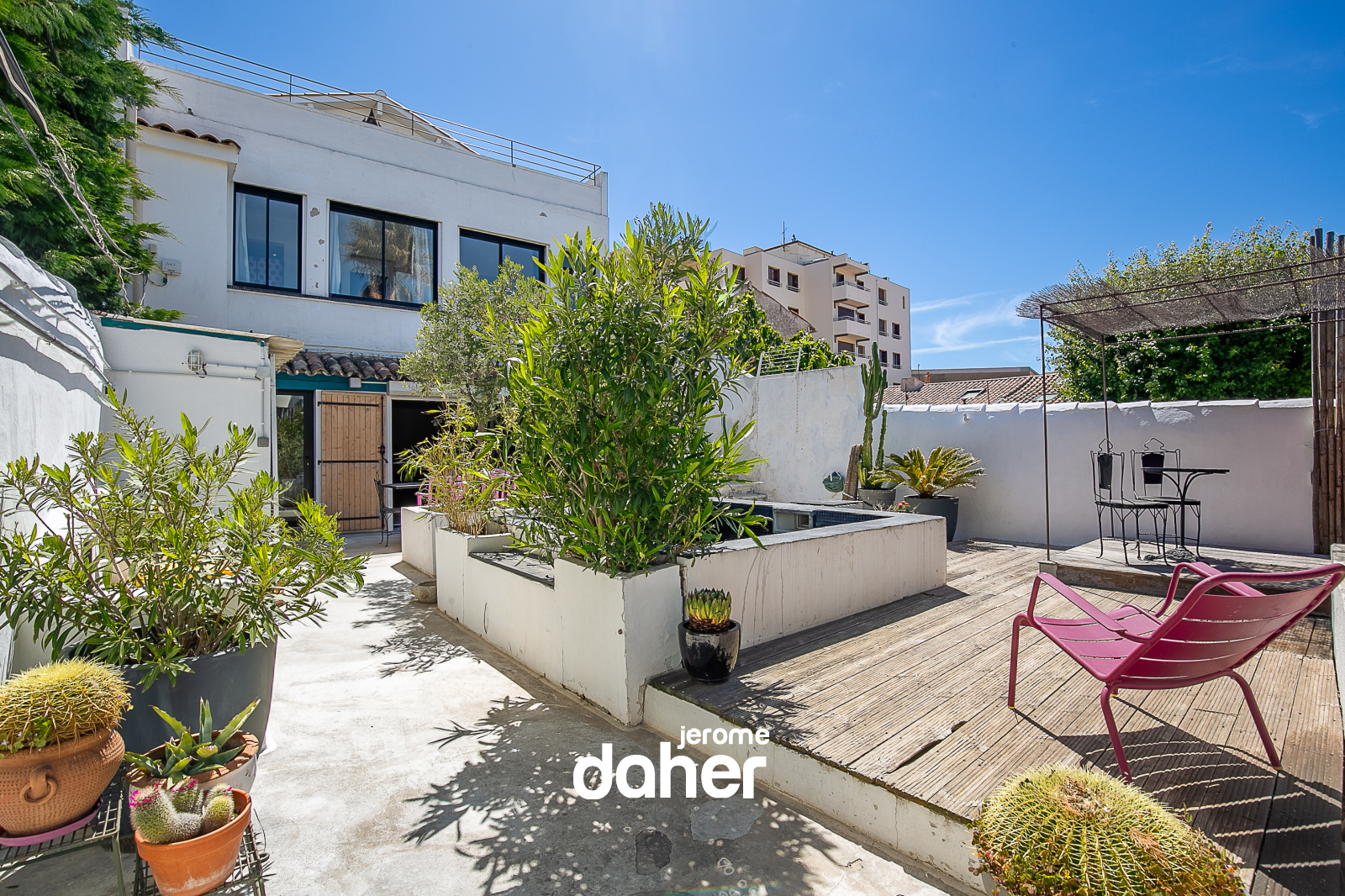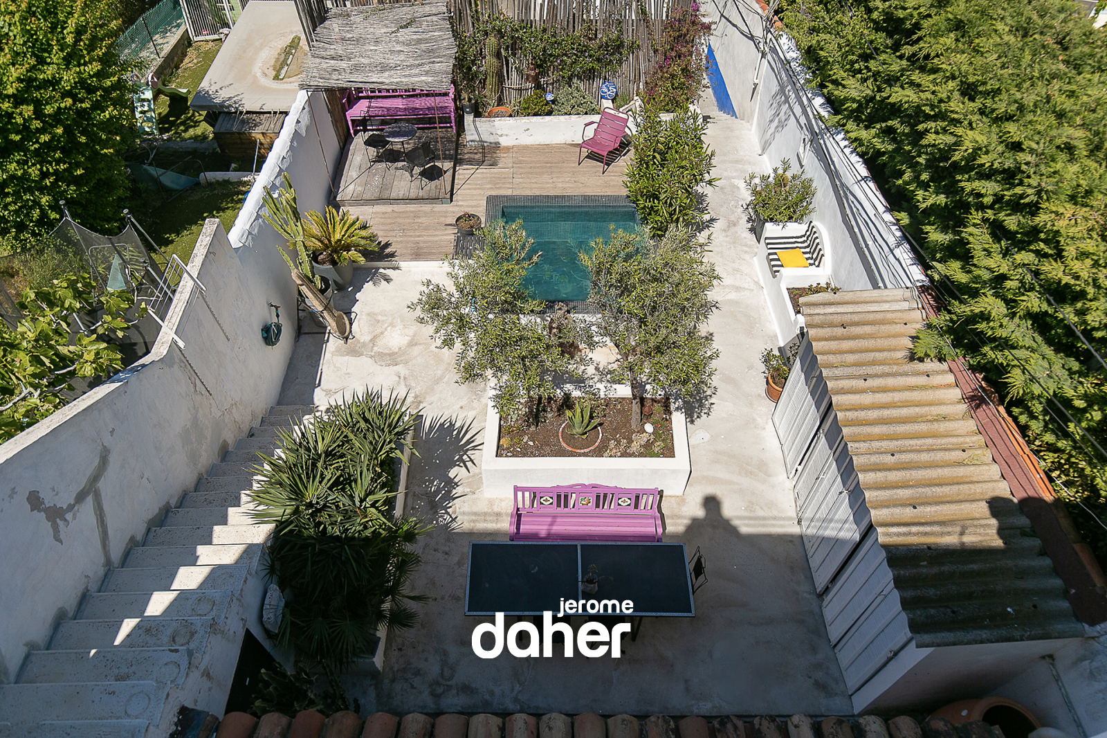 Sous compromis. Bompard, proche des commerces et au calme absolu, c'est à labri des regards que se dévoile cette ravissante maison de fond et son joli jardin ensoleillé agrémenté d'un bassin. Organisés sur 3 niveaux, les espaces d'habitation offrent 153m² habitables et 4 chambres. Au niveau rez-de-jardin, un vaste séjour avec cheminée, un bel espace cuisine-salle à manger qui s'ouvre entièrement sur la terrasse et le jardin, une buanderie et un WC indépendant. Au 1er étage, nous trouvons 3 belles chambres dont deux avec très jolie vue, un espace bureau, une salle de bains et un wc. Enfin, le niveau supérieur dévoile un vaste espace de 28m² avec salle d'eau et wc ayant accès à une belle terrasse avec vue panoramique sur la ville, la mer et Notre Dame de la Garde. Enfin, un grand garage de 21m² situé à deux pas peut-être vendu en supplément. Taxe foncière 1452 euros. Visite immersive sur daherimmo.fr