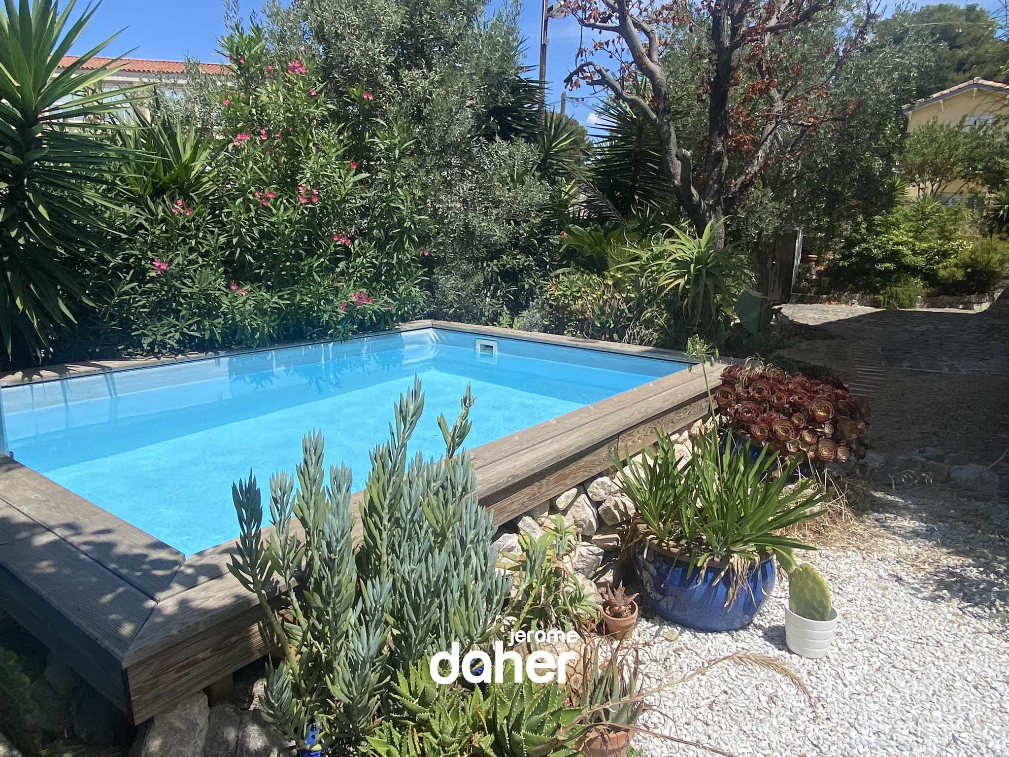 SOUS COMPROMIS : Mazargues : Dans un environnement au calme, élégante maison famililale de 150m² implantée sur une jolie parcelle arborée de 500m² avec piscine et garage fermé. Actuellement organisée en deux appartements reliés par un escalier intérieur, l'ensemble pourra être réuni très facilement. Au niveau rez-de-jardin, les espaces d'habitation offrent un grand T2 de 60m² avec un séjour bénificiant d'une triple exposition et accès au jardin, une cuisine indépendante, une chambre, une salle d’eau et un WC. À l’étage un T4 de 90m² composé d'un vaste séjour baigné de lumière, prolongé par une terrasse offrant une vue dégagée, une cuisine indépendante, trois chambres, une salle de bains et un WC, combles aménageables. À l’abri des regards, le jardin accueille une piscine hors sol pour des moments de détente en famille. La propriété dispose également d’un garage fermé de 24 m², d’une buanderie, d’une cave et d’un espace de stationnement pour plusieurs véhicules. Certaines photos présentent un aménagement virtuel (IA) – visuels non contractuels. Un bien rare, à découvrir sans tarder. Taxe foncière : 3571 euros. Contact Jérôme Daher : 06 82 56 98 98
