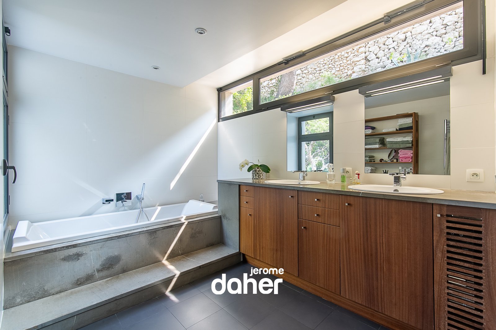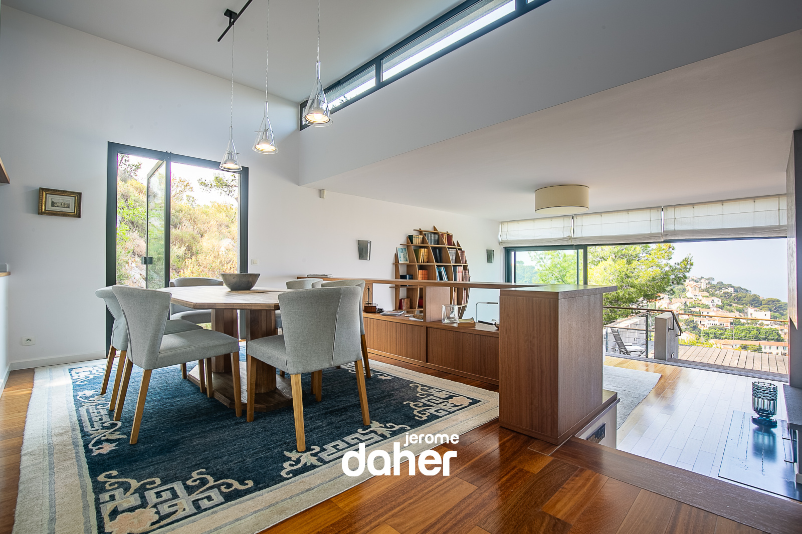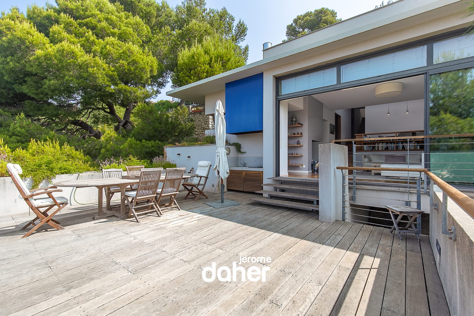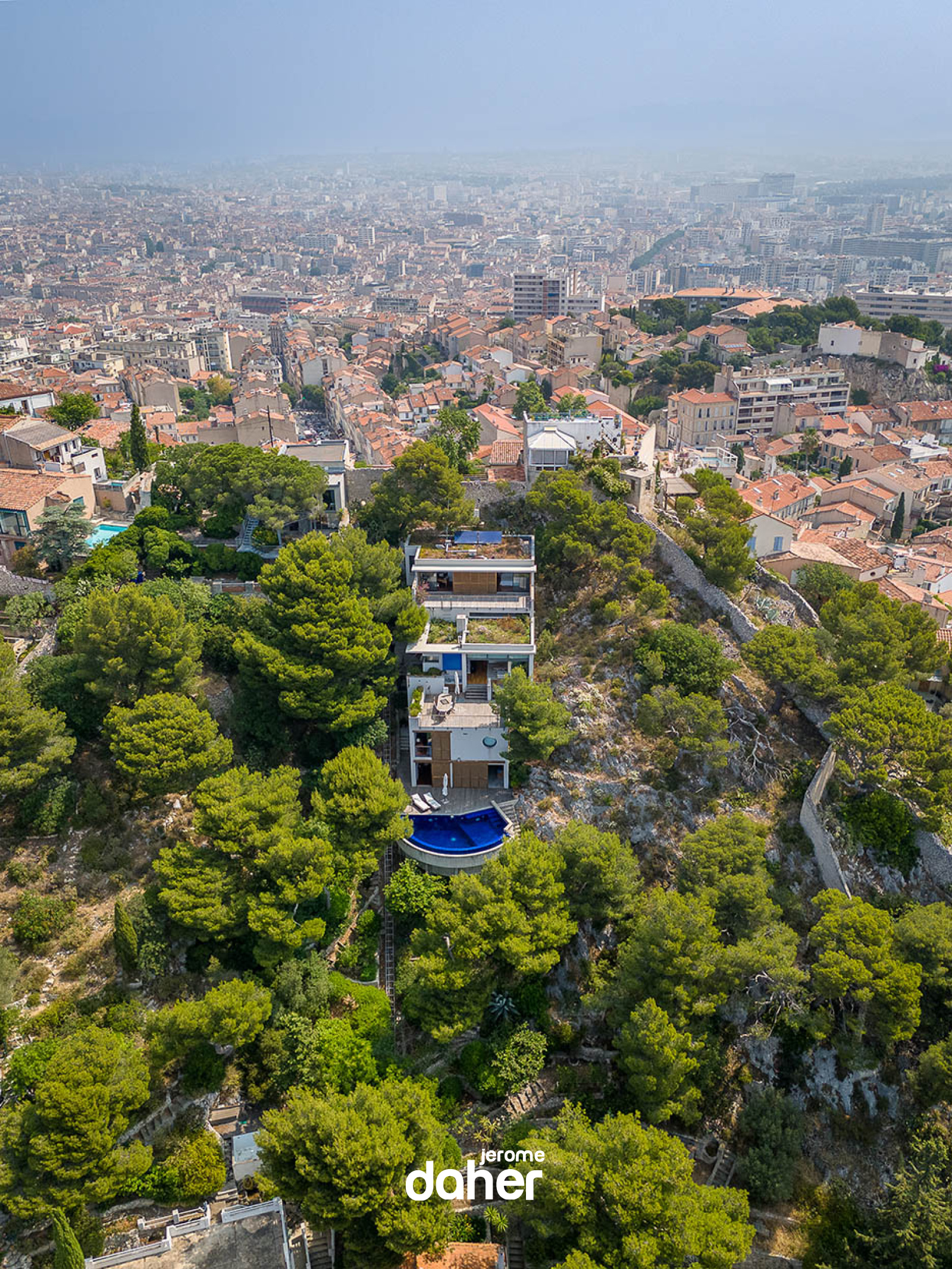 En exclusivité. Roucas-Blanc : Perchée au sommet d'une colline adossée à Vauban, cette maison contemporaine épouse parfaitement le terrain pour s'inscrire avec élégance dans un environnement sauvage calcaire et végétal, dessinant une réalisation architecturale hors normes, suspendue entre ciel et mer. Ici, la ville s'efface pour laisser place au silence absolu d'une nature préservée. Les différents niveaux profitent de vastes terrasses aux vues dominantes imprenables et des points de vues uniques sans aucun vis-à-vis. Dès l'entrée, la lumière naturelle inonde les volumes grace à de larges baies vitrées ouvrant sur l'extérieur. Le séjour, chaleureux et épuré s'ouvre sur une vaste terrasse en surplomb, avec une vue omniprésente et spectaculaire sur la mer et les reliefs environnants, un tableau vivant au fil des heures. La cuisine équipée, séparée, s'intègre avec sobriété et fonctionnalité à l'ensemble.La maison propose 4 chambres dont une suite parentale avec salle de bain et WC, un dressing et un bureau pouvant faire office de cinquième chambre, et un accès direct à une large terrasse avec vue.Deux chambres se partagent une salle de bain avec toilettes et bénéficient d'une jolie vue sur la mer et le jardin environnant..Enfin une chambre indépendante avec une salle de bains et toilettes privatives s'ouvrant sur la piscine, peut etre transformée en véritable studio grace à un espace supplementaire de 14m² qui jouxte la chambre (ou cinquième chambre). A ces espaces s'ajoutent un salon TV, idéal pour les moments de détente, une grande buanderie et de nombreux rangements intégrés. Une maison indépendante fait aujourd'hui office de garage double permettant d'accueillir deux véhicules cote à cote.Elle pourra accueillir aprés travaux, un appartement de 90m² environ, permettant ainsi à cet espace de retrouver sa fonction initiale. Une place de stationnement supplémentaire à l'extèrieur complète l'ensemble.Un monte charge relie directement le garage à l'habitation principale, assurant un confort d'usage au quotidien.