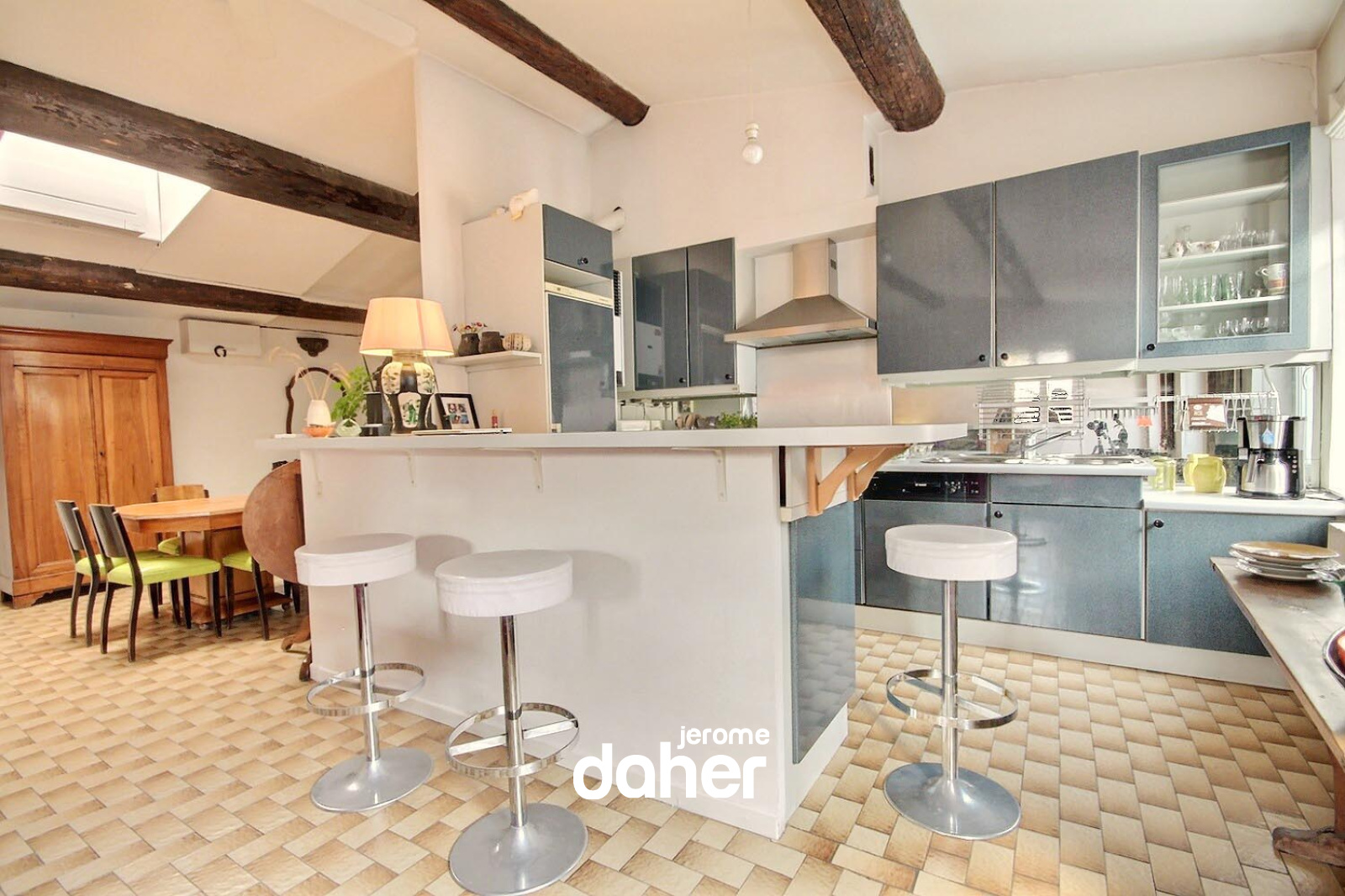 Occupant le 1er et dernier étage d'une maison traditionnelle (fin 18e) du quartier prisé et animé de Saint-Victor, ce grand T3 aux allures de maison de ville séduira par son cachet et son volume. Ce plan atypique de 78m² loi carrez (83m² utilisables) aux allures de loft offre un belle pièce à vivre de 50m² entièrement habillée de poutres d'origines qui s'organise autour d'un salon avec cuisine US prolongé par un espace salle à manger. Le coin nuit se compose de deux chambres, l'une attenante au séjour, la seconde équipée d'un vélux, une salle de bains et un WC séparé complètent cet appartement rare à la vente. Copropriété de 2 lots. Faibles charges annuelles : 1153 euros. Taxe foncière 909 euros. A deux pas des commerces, restaurants, du Vieux-Port et accès autoroutiers.