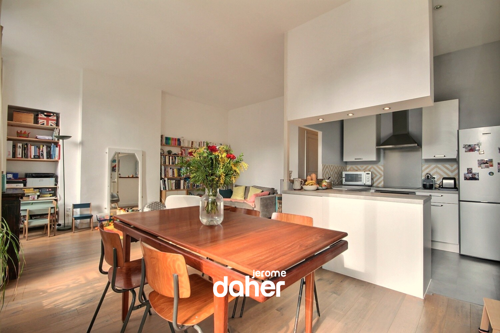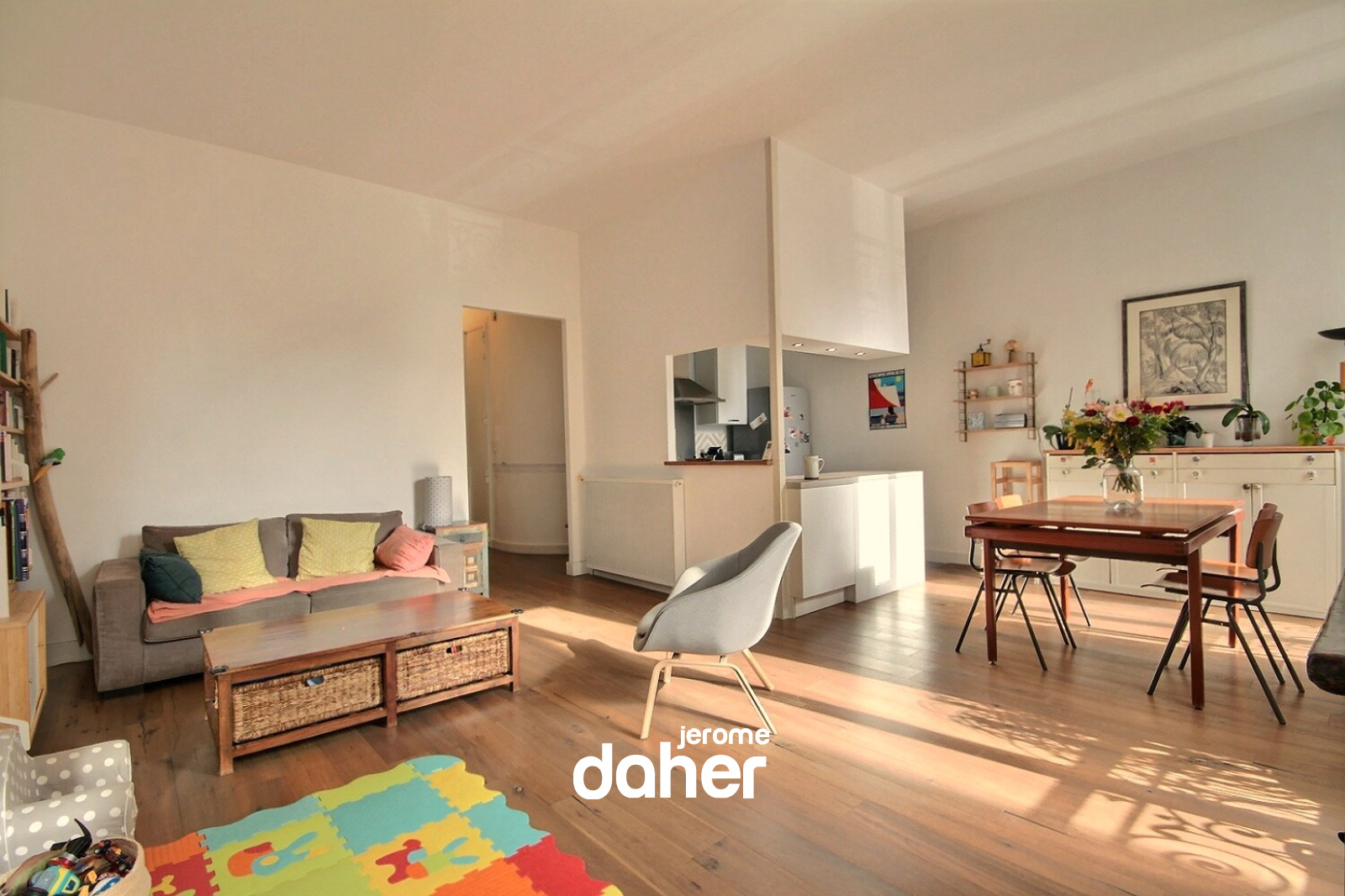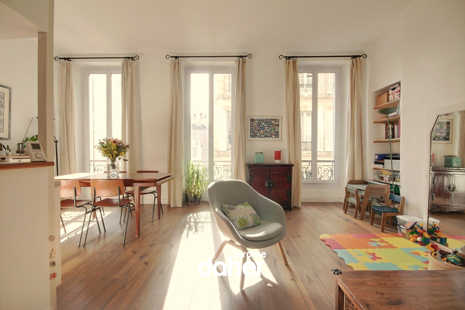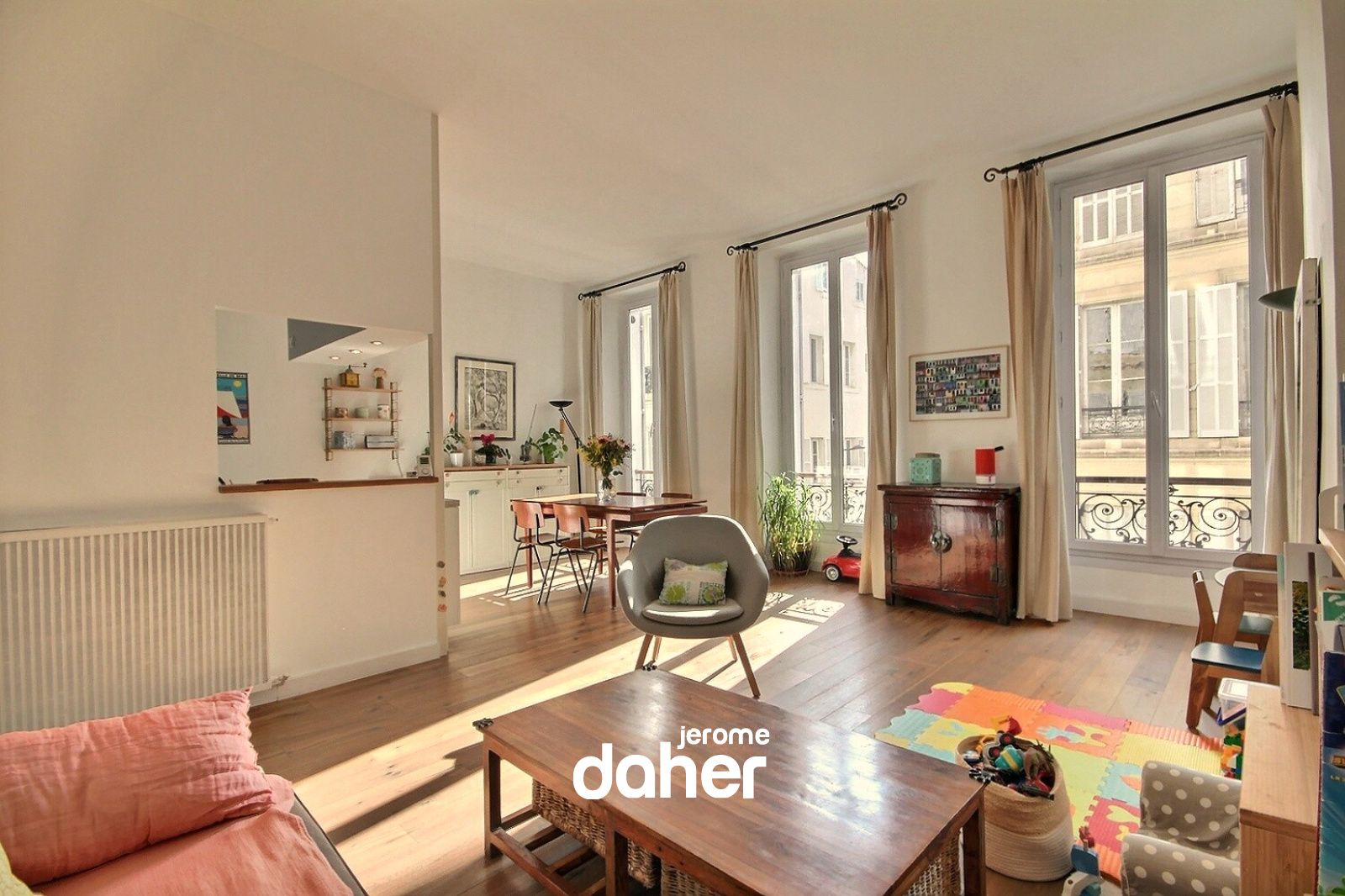 En exclusivité et rare à la vente. Palais de Justice, sur le haut de la rue Saint-Jacques, au 2ème étage d'un bel immeuble ancien sans ascenseur, appartement T3 en parfait état. Ce généreux plan traversant de 87m² profite de beaux volumes et d'une belle luminosité. Côté sud : un séjour avec cuisine ouverte de 33m² est éclairé par 3 portes fenêtres. Côté nord, sur jardin au calme : deux chambres de 20 et 12m², une salle de bains et un WC indépendant. Parquet contrecollé en chêne et tomettes dans les chambres, double vitrage, porte blindée. Une belle cave de 12m² complète ce bien. Charges mensuelles 63 euros et taxe foncière 1305 euros.