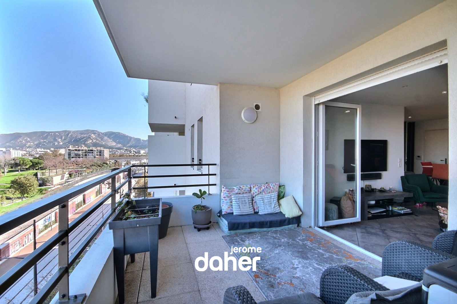 Dans une résidence moderne de 2017, en étage élevé avec très belle vue dégagée et arborée, découvrez cet appartement T3 de 61m² avec terrasse qui profite d'une vue imprenable sur le Parc du 26ème centenaire. Il se compose d'une entrée qui dessert l'ensemble des pièces : une pièce à vivre de 30m² avec cuisine ouverte aménagée et équipée et sa belle terrasse de 11m², véritable atout pour profiter de déjeuners en famille ou entre amis avec vue sur le parc, un cellier, deux chambres avec placards, une salle de bains et un WC. Climatisation dans le séjour. Tramway au pied de l'immeuble ! Possibilité d'achat d'un grand box simple en sus 25 000 €. Charges mensuelles 84 €. Taxe foncière 1500 €. Contact Arnaud Masson 0679830396 / 0491475605.