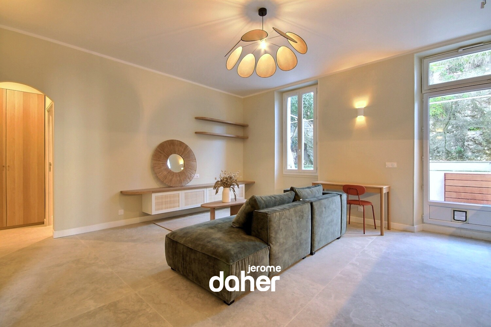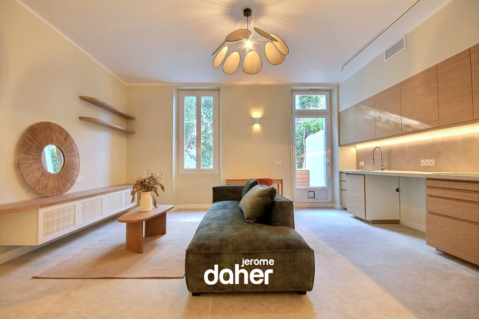 Situé dans le secteur prisé de Saint-Lambert, au fond d’une impasse calme et à proximité immédiate de la rue d’Endoume, cet appartement T3 se trouve au premier étage d’un immeuble intimiste de deux étages. D’une superficie de 68 m², il a fait l’objet d’une rénovation complète réalisée avec des matériaux de qualité et des prestations soignées. L’espace de vie se compose d’un séjour lumineux avec une cuisine ouverte entièrement aménagée, offrant un accès direct à une terrasse de 30 m². Cette terrasse se prolonge par un jardin privatif de 45 m² agrémenté d’un bassin, créant un véritable espace extérieur propice à la détente et aux moments de convivialité. L’entrée dispose d’un placard intégré offrant un espace de rangement fonctionnel. La partie nuit comprend une grande chambre avec vue sur le jardin bénéficiant de sa salle d’eau privative avec WC.