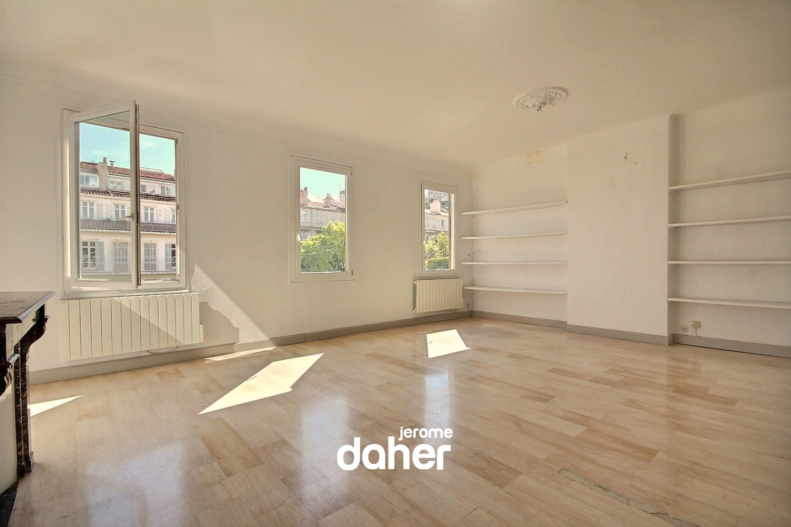 Rue Edouard Delanglade : Au dernier étage avec ascenseur d'un bel immeuble ancien de 1890, T3 de 103m² exposé sud sur jardin avec vue dégagée depuis toutes les pièces. Vaste séjour de 33m² avec jolie vue sur Notre Dame de la Garde, une cuisine aménagée ouverte sur le séjour, un dégagement dessert le coin nuit avec 2 chambres de 15m², une salle de bains au charme de l'ancien équipée d'un mur rangements, un WC indépendant. Une cave complète ce bien. Double vitrage. Taxe foncière 1357 euros. Charges annuelles 1752 euros. Nous aimons: le bel immeuble ancien situé à proximité du Bd Notre Dame, de ses animations et des écoles, sa position dominante en étage élevé avec vue sur les jardins en ville, son exposition sud et son ensoleillement, les volumes de ses pièces.