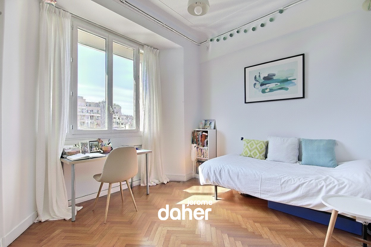 Carré d'Or : Place Louis Lumière, au calme absolu, un appartement T4 de 94m² situé au 2ème étage avec ascenseur d'un bel immeuble Art déco. Grâce à son plan d'angle exposé sud-est et ses vues dégagées, l'appartement est lumineux et très calme. Une belle entrée dessert en étoile une pièce de vie de 32m² avec un salon et une salle à manger (transformable en une 3ème chambre), ainsi que deux grandes chambres. Un dégagement donne accès à une charmante cuisine séparée, une salle de bains et un WC indépendant. Le parquet d'origine dans les pièces principales apporte du cachet et de l'harmonie. En complément, l'appartement dispose d'une cave en sous-sol et d'une chambre de service non aménagée au dernier étage. Proximité immédiate des établissements scolaires (Provence, Notre Dame de L'Huveaune), des commerces et des transports en commun. Charges mensuelles : 93€ - Taxe foncière : 2 313€. Contact : Charlotte VOISINE 06 10 11 64 98 - Agence 04 91 47 56 05