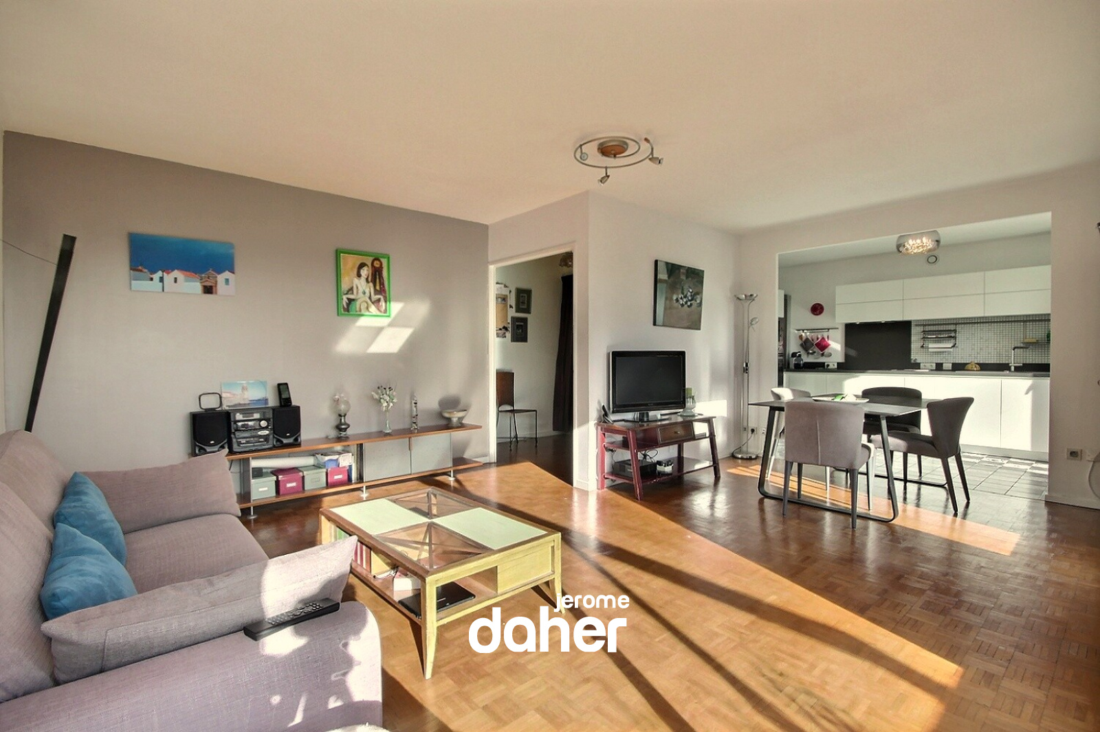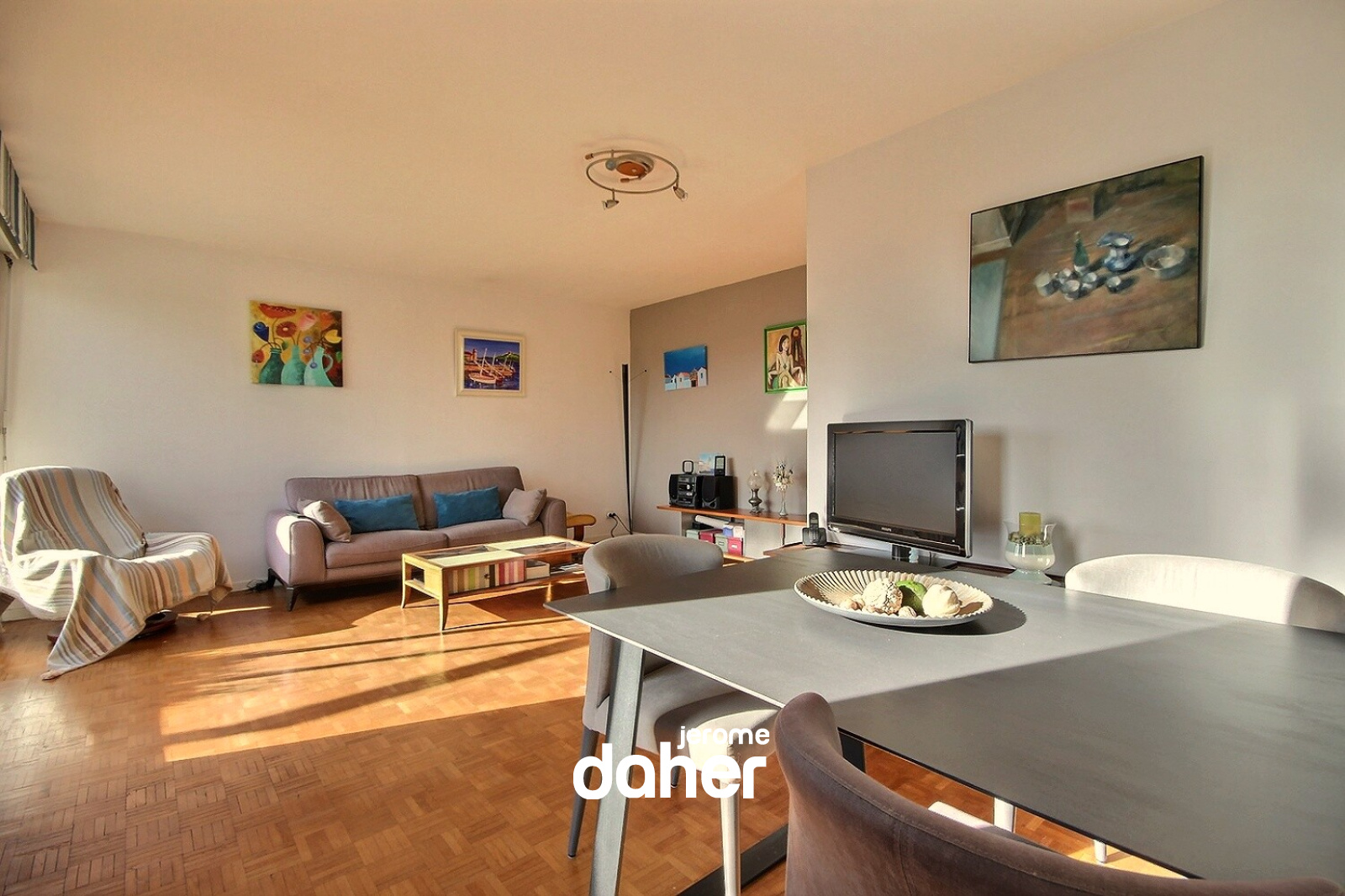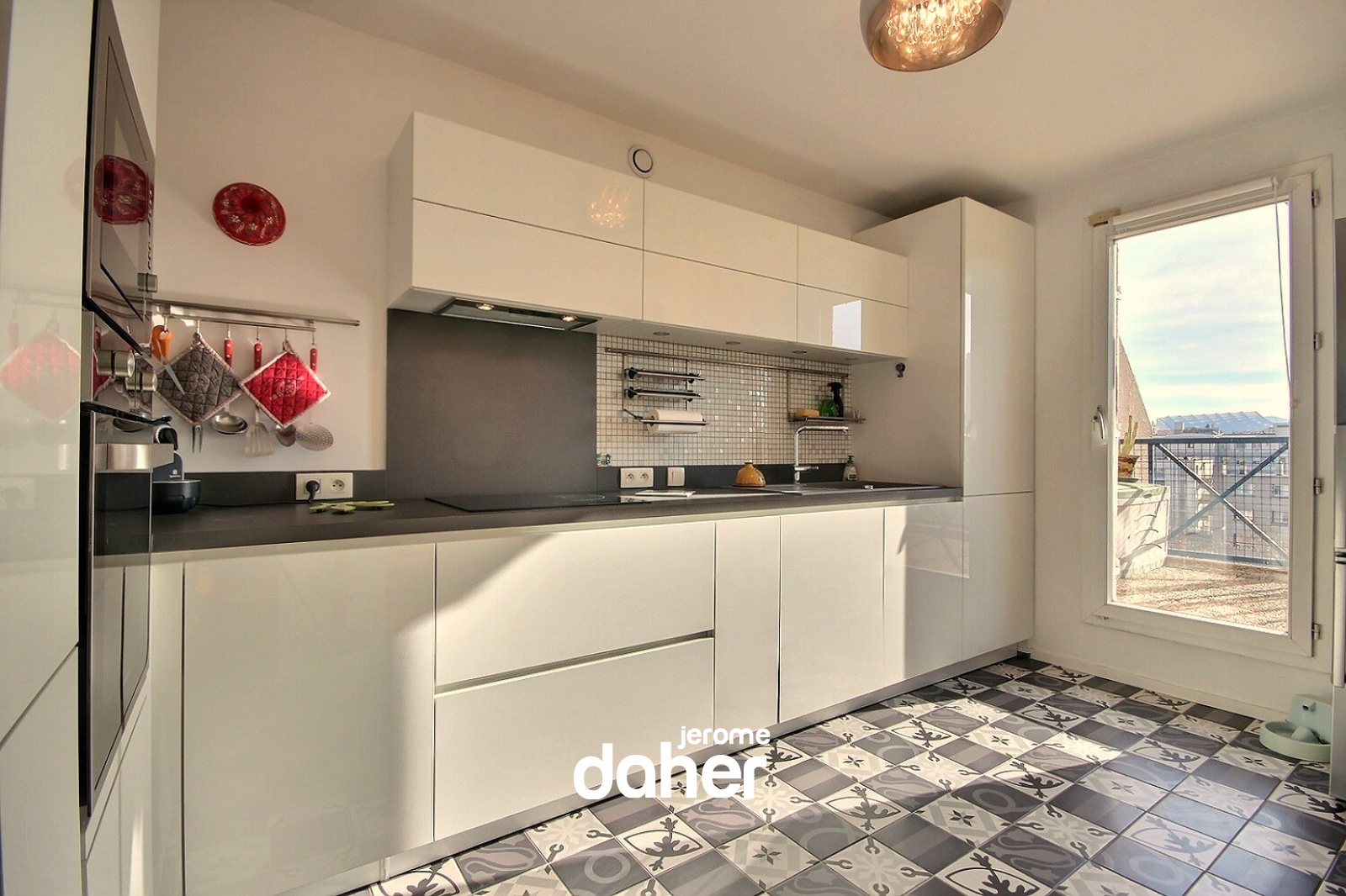 Nous aimons : le soleil et la vue, la grande terrasse offrant un bel espace de vie, la situation proche du métro Perier.