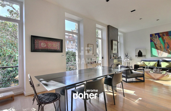 Palais de Justice : dans un ancien hôtel particulier de la fin du 19e, ce bel appartement bourgeois T5 de 125m² aux volumes généreux et au cachet préservé conjugue parfaitement le charme de l'ancien et le confort moderne d'un appartement rénové. Ce plan traversant orienté est/ouest conviendra parfaitement aux exigences d'une famille et pourra s'adapter à de nombreuses configurations. A l'est avec vue sur les arbres, nous trouvons un majestueux séjour avec cheminée et une grande chambre de 22m². A l'ouest sur jardin au calme avec jolie vue sur Notre Dame de la Garde, nous trouvons 3 chambres et une cuisine aménagée qui pourra être éventuellement agrandie pour offrir un bel espace cuisine-salle à manger. Enfin une salle d'eau et un WC indépendant complètent ce bien aux prestations soignées idéalement situé à deux pas des écoles, commerces et proche des accès autoroutiers. Charges mensuelles 136 euros, taxe foncière 1930 euros. Possibilité de location d'un parking à proximité immédiate.