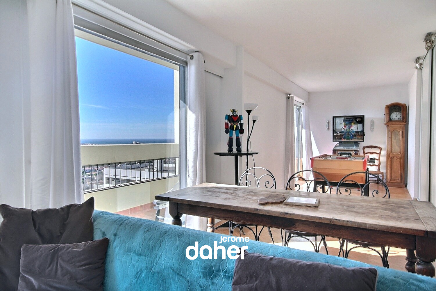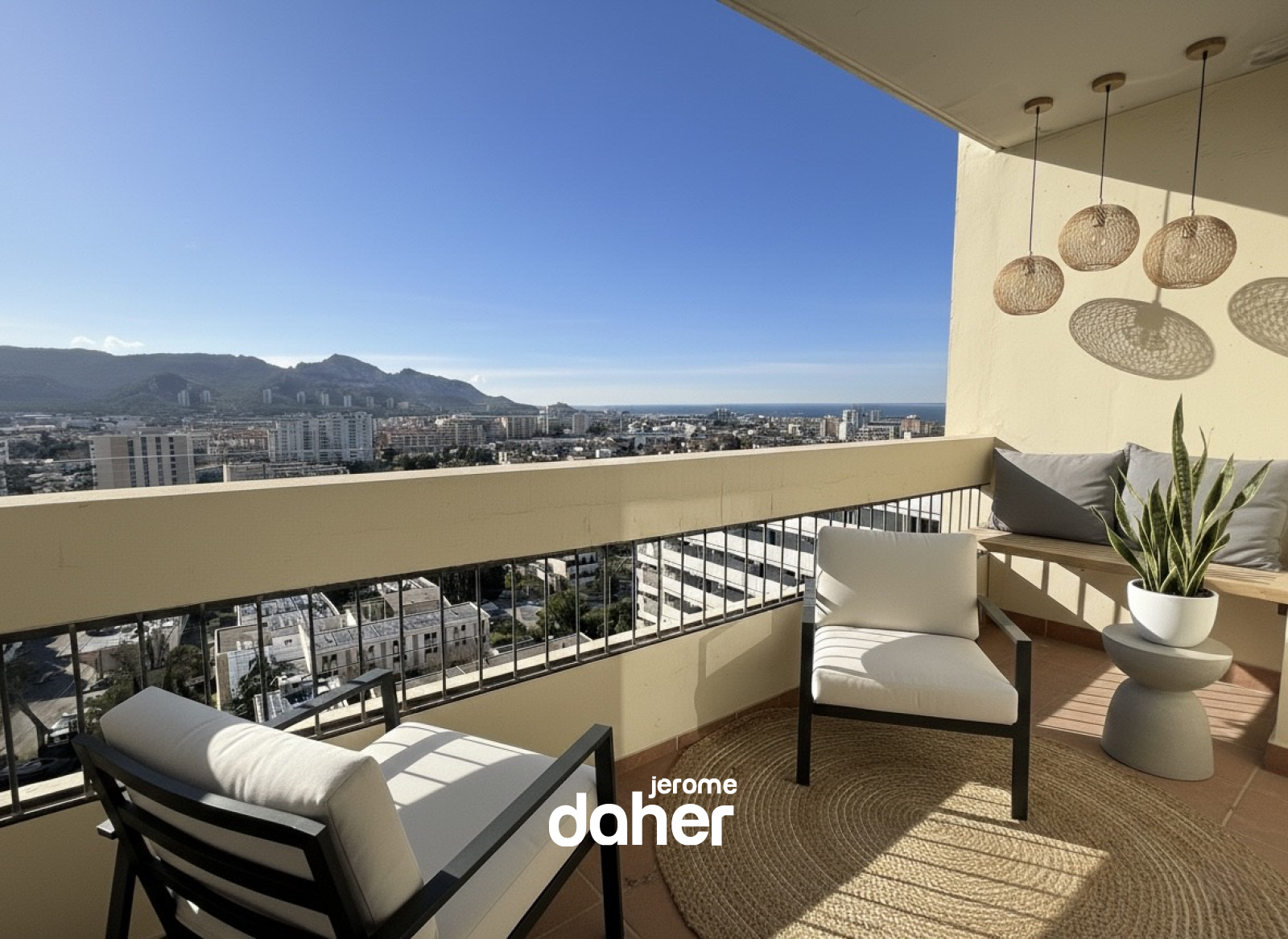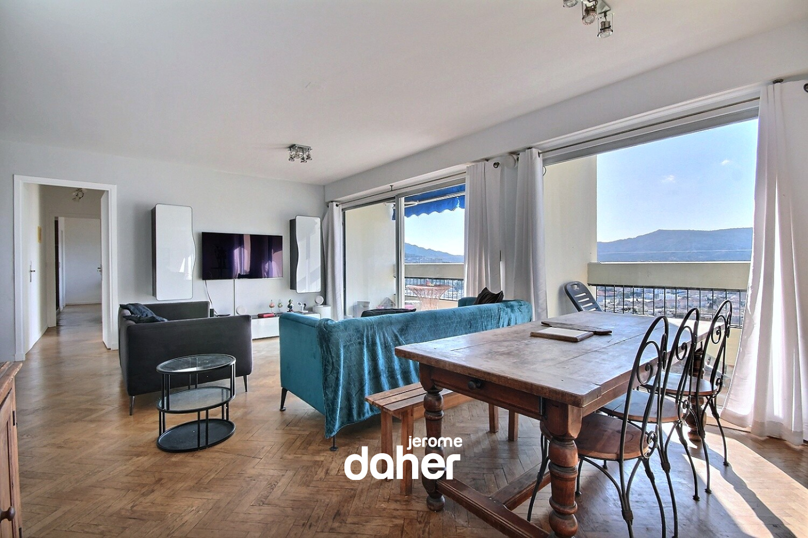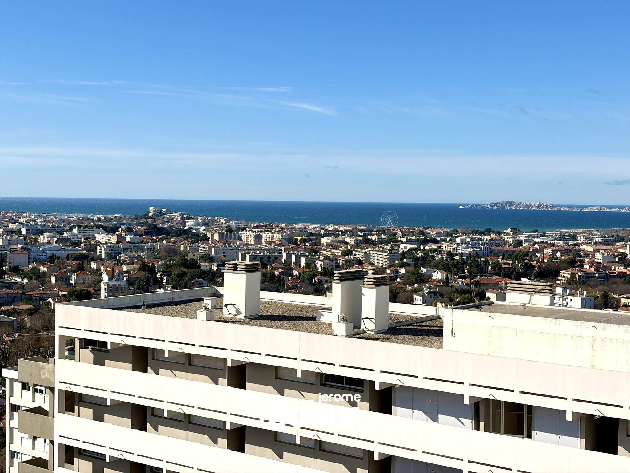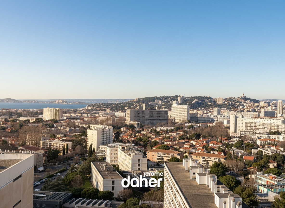 Chateausec, au calme et en étage élevé avec vues panoramiques, découvrez ce superbe appartement T5 de 134m² habitables (128m² loi carrez). Dès l’entrée, vous serez séduit par la grande pièce de vie entièrement parquetée d'environ 55 m² idéalement exposé au sud-ouest. Ce salon-séjour baigné de lumière s'ouvre sur trois balcons avec vue panoramique imprenable sur les collines et sur la mer et pourra facilement accueillir une 4ème chambre. La cuisine, séparée et entièrement aménagée, avec sa loggia profite d'une vue imprenable surla ville et Notre Dame de la Garde. Deux coins nuits offrent trois belles chambres dont une superbe suite parentale de plus de 25m², avec son dressing et sa salle de bains (douche et baignoire à jets), ainsi qu'un accès à un balcon privatif. L'appartement dispose également d'une seconde salle de bains, de deux WC séparés et de nombreux rangements. Une cave au sous-sol complète ce bien. Possibilité de location d'un garage (120 euros/mois). La copropriété Chateausec offre un cadre de vie privilégié et serein : service de conciergerie (8 conciergeries), centre commercial au pied de l'immeuble, école, terrains de jeux, un terrain de tennis, deux parkings extérieurs et de vastes espaces verts parfaitement entretenus. Charges mensuelles de 871 € (incluant gardiennage, chauffage, eau chaude et eau froide). Taxe foncière de 2 541 €. Contact : Jérôme Daher - 06 82 56 98 98 ou Agence - 04 91 47 56 05