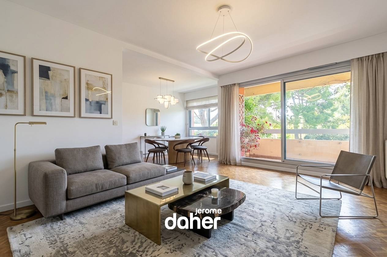 Saint Anne - Bonneveine : Situé au 1er étage d'une petite copropriété de standing de 1980, ce bel appartement T6 offre des vues dégagées, de jolis extérieurs et une configuration modulable. Actuellement composé de deux lots réunis, le bien propose un premier espace de vie comprenant un séjour lumineux exposé Est s'ouvrant sur une belle terrasse de 13 m², une cuisine dînatoire indépendant (possibilité d’ouverture sur le salon), ainsi que deux chambres de 8,5 m², 10 m² exposées Sud et Est. Ce premier lot dispose également d'une salle d'eau et d'un WC indépendant. Le second lot attenant se compose d'une grande entrée desservant un salon de 29 m² exposé Sud avec balcon, facilement transformable en deux chambres supplémentaires, d'une cuisine pouvant devenir une salle d'eau, d'une grande chambre de 13 m² exposé sud, d'une salle de bains et d'un W.C indépendant. Idéalement situé à 15 minutes à pied des plages, à proximité du Parc Borély, du centre commercial Bonneveine. Ce bien nécessite un rafraîchissement pour révéler tout son potentiel. Une cave complète ce bien, aisnsi qu'un garage double en sus du prix (42 000 €). Il offre la flexibilité de créer soit une vaste résidence familiale de 5 chambres ou deux appartements distincts (deux T3). Charges mensuelles de 428 €. Taxe foncière de 3 351 €. Contact : Jérôme Daher - 06 82 56 98 98 ou Agence - 04 91 47 56 05