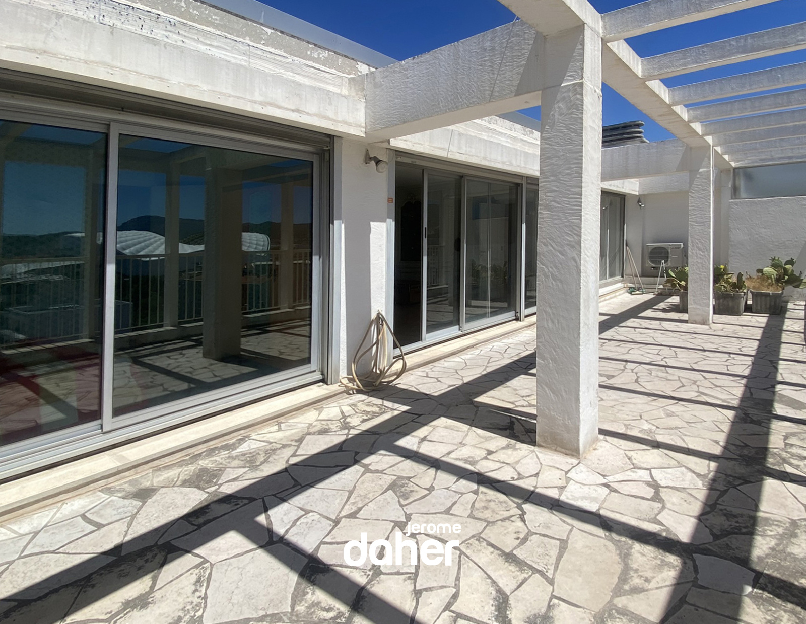 Carré d'or. En situation calme et dominante, duplex en dernier étage avec terrasses plein sud profitant de vues panoramiques imprenables sur la ville et la mer. A deux pas des commerces, écoles et commodités, situé au 10ème et 11ème étages d'une copropriété de standing, ce plan traversant T7 de 215m² habitables (204 loi carrez) offre un cadre de vie idéal pour des familles nombreuses.